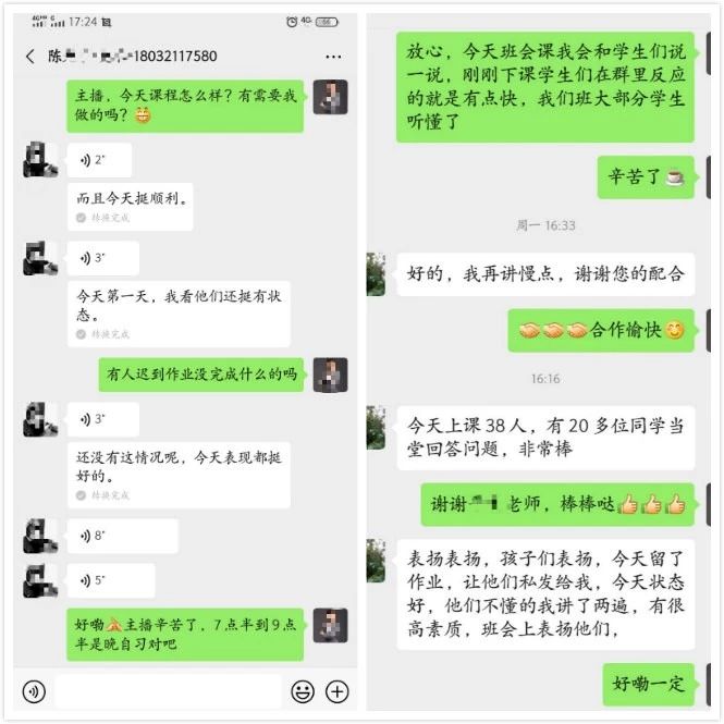 老师们及时与班主任对接直播课程情况